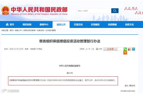 继去年12月征求意见后,慈善组织的投资管理办法终于落地!