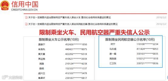 根据《关于在一定期限内适当限制特定严重失信人乘坐火车 推动社会信用体系建设的意见》、《关于在一定期限内适当限制特定严重失信人乘坐民用航空器 推动社会信用体系建设的意见》以及《关于在一定期限内适当限制特定严重失信人乘坐火车和民用航空器实施细则》的相关规定,今年6月起,每月初,由证监会等相关部门提供,通过“信用中国”网站对外公示特定严重失信人名单。公示期为7个工作日,如无正当异议理由,公示期满后将由铁路和民航部门对名单主体采取惩戒措施,在1年内限制其乘坐火车高级别席位和民用航空器。