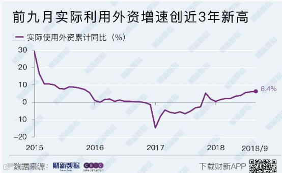 10月18日,商务部发布数据显示,1-9月我国实际使用外资979.6亿美元,同比增长6.4%,合人民币6367亿元,同比増长2.9%。