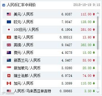 10月19日,人民币兑美元中间价报6.9387,创2017年1月4日以来新低,当时报价6.9526。这也意味着,一旦中间价突破6.9526,则人民币将跌到10年来最低点。