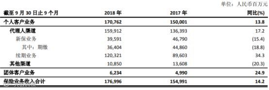 具体到寿险业务,前三季度,太保寿险实现保险业务收入 1769.96 亿元,同比增长 14.2%。代理人渠道续期业务大幅增长是重要拉动因素。报告期内,太保个人客户业务代理人渠道实现业务收入 1599.12 亿元,同比增长 17.2%,其中新保业务 395.91 亿元, 同比下降 15.4%。