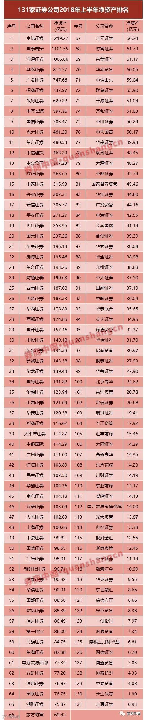 中国证券业协会上半年的数据显示,131家证券公司中,70家券商的净资产在60亿以上。(注:协会采用单家公司口径)