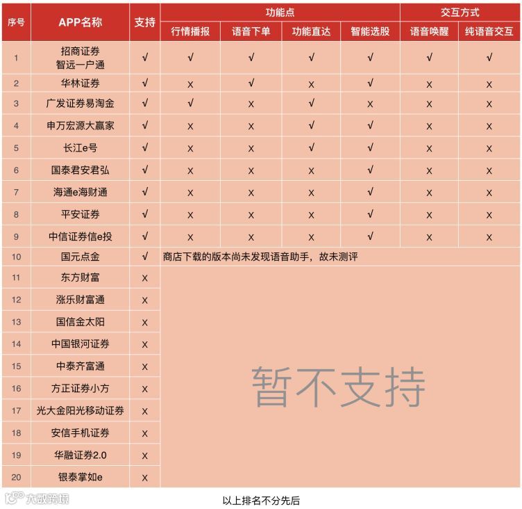 随后一批券商也纷纷跟进,开始试水语音交互,目前有10家券商支持语音助手,但支持语音交易功能的,目前只有2家券商。