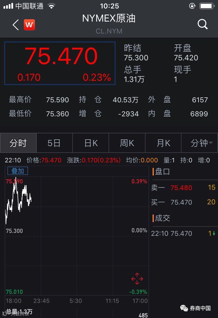 NYMEX原油期货则收涨3.03%,报75.47美元/桶,连涨三日,创2014年11月21日以来收盘新高。