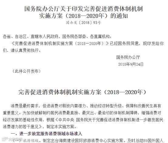 国务院办公厅最新印发《完善促进消费体制机制实施方案(2018-2020年)》(简称《方案》),部署加快破解制约居民消费最直接、最突出、最迫切的体制机制障碍,进一步激发居民消费潜力,强调要积极培育重点消费领域细分市场,进一步激发居民消费潜力。