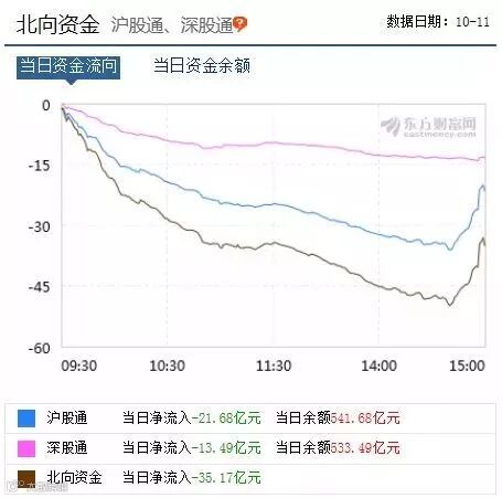 北向资金还在大举撤退,数据显示,截至收盘,北向资金净流出35.17亿元,盘中一度达近50亿元。其中,沪股通资金净流出21.68亿元,当日余额541.68亿元;深股通资金净流出13.49亿元,当日余额533.49亿元。