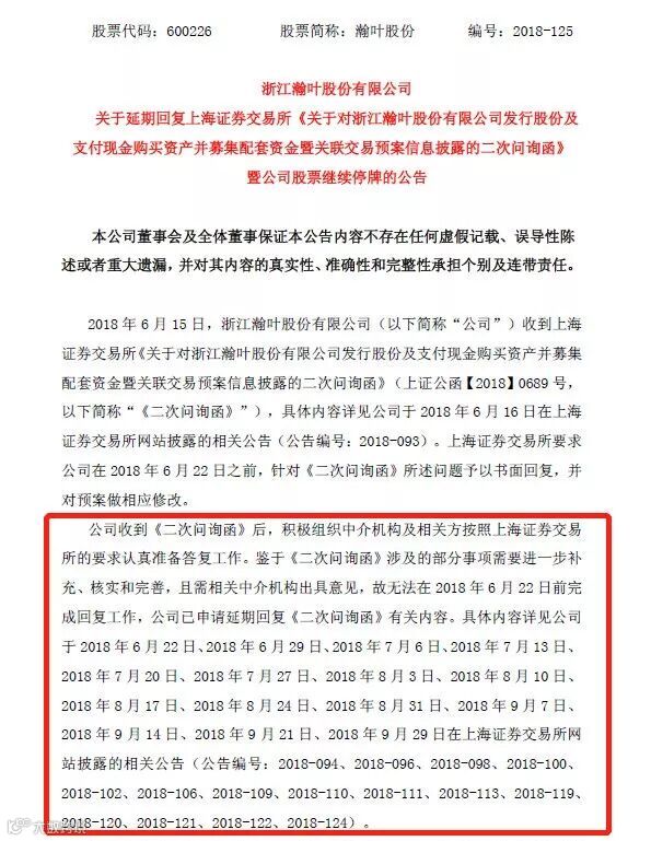 天价收购引发上交所的两度问询,对于第二次问询,瀚叶股份已经多次已申请延期。瀚叶股份称,鉴于《二次问询函》涉及的部分事项需要进一步补充、核实和完善,且需相关中介机构出具意见。