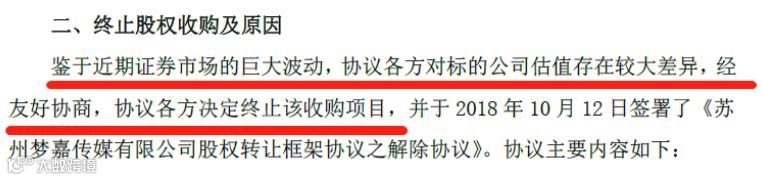 一位业内人士分析,最近整体市场大幅下跌,公司股价出现波动属于正常现象,收购终止的很大一部分原因应该是由于“对标的的估值差异也比较大”,可能是感觉买贵了。不过终止收购没有给上市公司造成太大影响,就框架协议约定支付的1 亿元“排他费用”,苏州梦嘉股东各方10 个工作日内将全额按照各自收款金额予以退还。