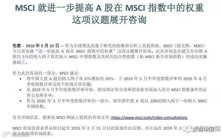 而就在这之前,MSCI刚刚宣布:建议将中国大盘A股的纳入因子从5%增加到20%。这将分两阶段进行——2019年5月半年度指数评估和2019年8月季度性指数评估。