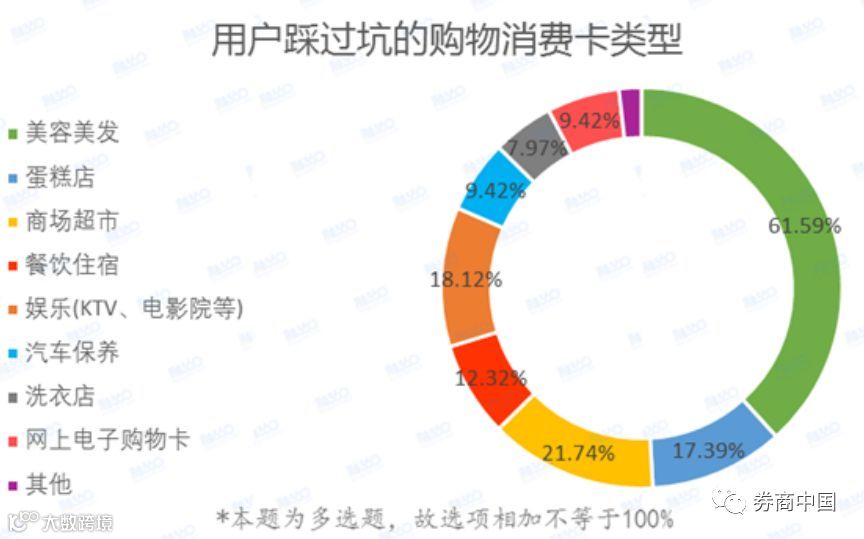 其中,让用户踩坑最多的是美容美发类购物消费卡,超6成(61.59%)的用户表示曾经踩过坑,比例远远超过其他类型的购物消费卡。