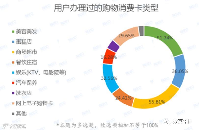 如今,餐饮、洗车、美容美发……甚至修鞋大爷,几乎各行各业都有会员模式,先来看看这些卡具体都来自哪里。调查显示,有55.81%的消费者曾办理过商场超市卡,紧随其后的则是51.74%的消费者办理过美容美发卡,蛋糕店也是发卡大户,有36.05%的消费者办过,有32.56%的消费者办过娱乐类卡(包括:KTV、电影院等)。