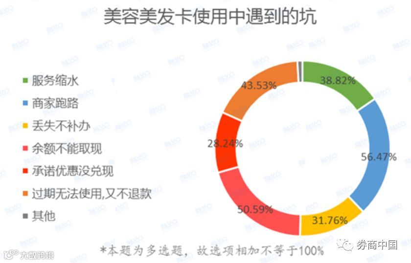 那么,美容美发卡的坑到底都有哪些呢?融360调查发现,用户在使用美容美发卡的过程中,踩的最多的3个坑分别是“商家跑路”“余额不能取现”“过期无法使用,又不退款”,用户踩坑比例分别高达56.47%、50.59%、43.53%。
