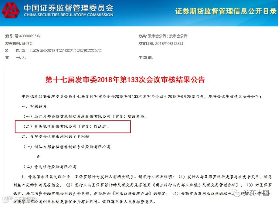 券商中国记者获悉,8月28日,第十七届发审委第133次工作会议召开,青岛银行A股IPO成功过会。青岛银行也成为2017年10月至今第五家成功闯关IPO的银行。