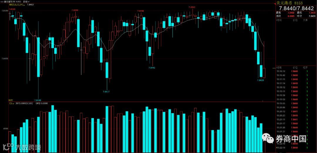由于香港的联系汇率政策,香港的汇率政策是挂钩美元的联系汇率政策。随着香港利率的抬升,港币的贬值压力明显缩小。在过去一周多的交易时段来看,港币上升到了7.8440附近,暂时脱离7.85弱方兑换保证水平。