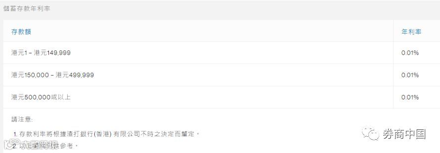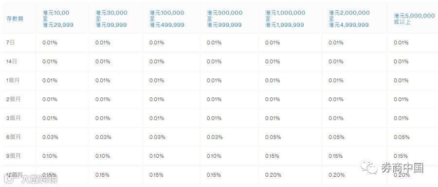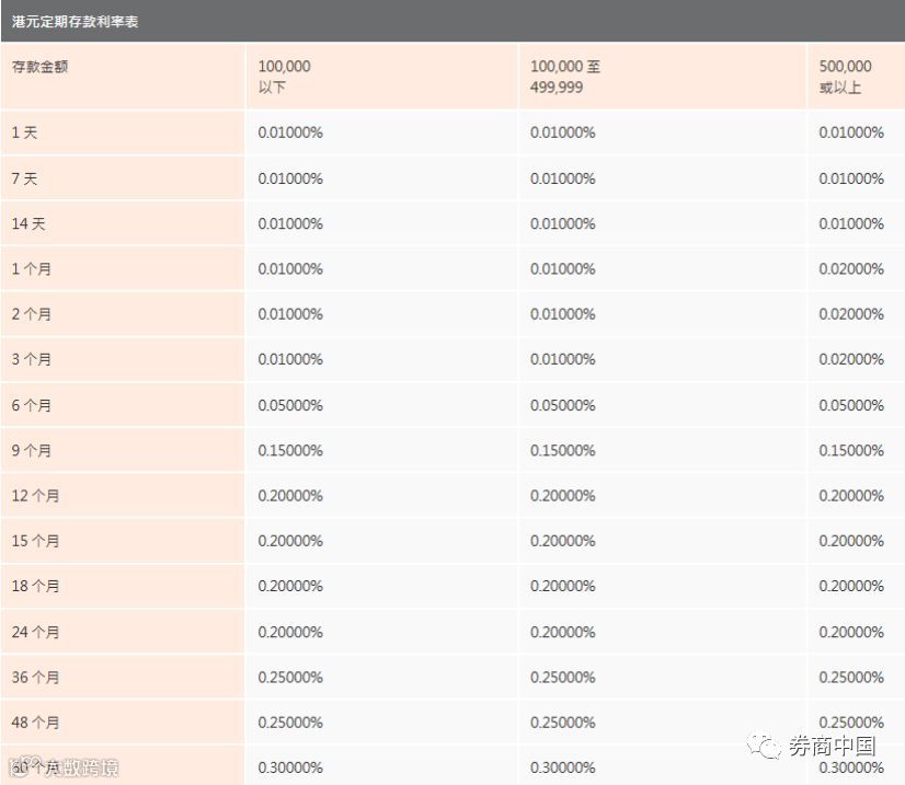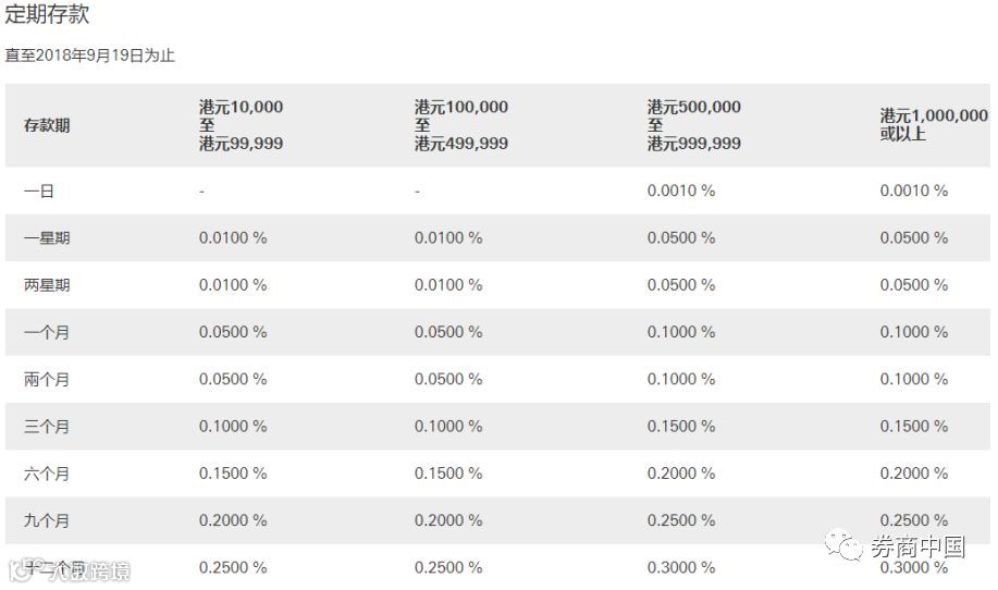 渣打银行(香港)有限公司的港币活期存款利率和定期存款利率水平表:
