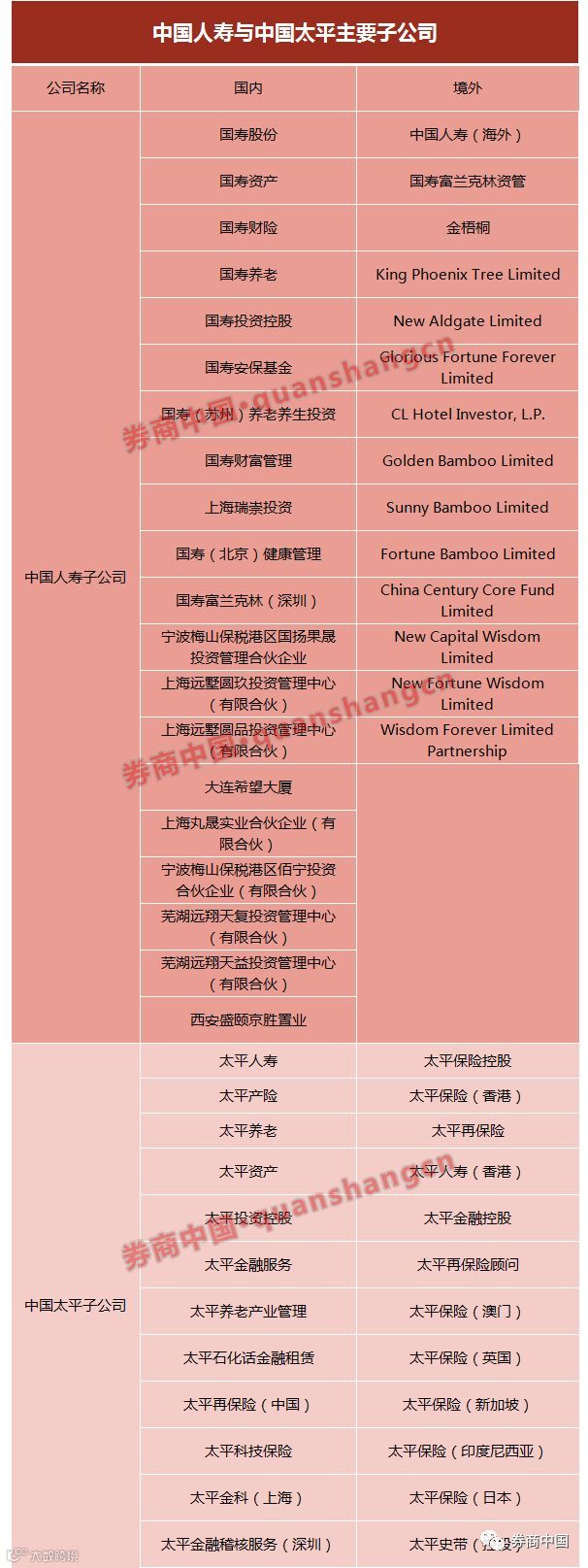 从整个布局来看,目前国寿集团已拥有寿险、产险、资管、养老投资、基金等多元化布局,太平集团的综合布局方面也比较完善,集齐了寿、产、养老、资产、再保险等保险牌照,并涉足了金融租赁、养老产业管理领域。两家公司均在海外进行了业务布局。