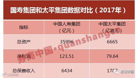 仅以国寿集团旗下最重要的上市公司国寿股份为例,国寿股份上半年保费收入3604.82亿元,是中国太平集团总保费收入的超3倍,上半年净利润164.23亿元,是太平集团的约3.6倍。截至2018年上半年末,国寿股份总资产3.04万亿元,是太平集团的约4.8倍。