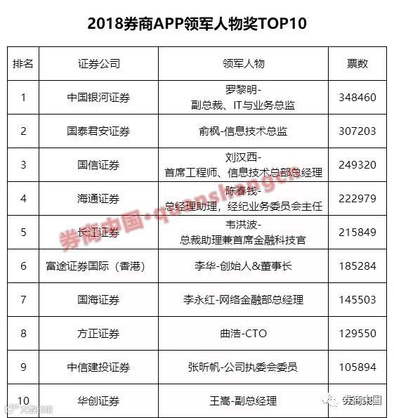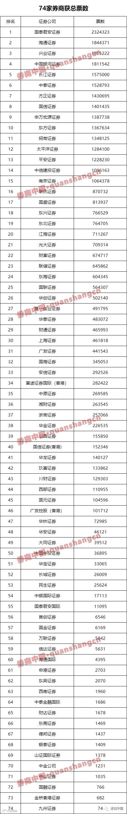 该奖项票数前十的券商分别是,国泰君安证券、中泰证券、方正证券、兴业证券、中国银河证券、海通证券、长江证券、招商证券、国信证券和申万宏源证券。