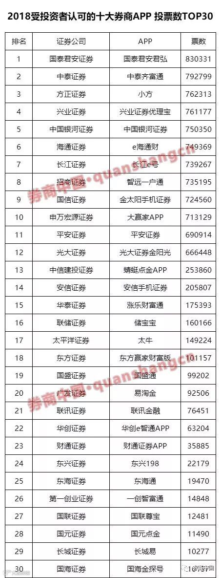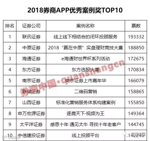 以上是“券商中国·2018优秀证券公司APP评选”微信投票的最终结果。券商中国作为主办方,见证了参评券商这11天来为自家拉票做出的辛勤努力。