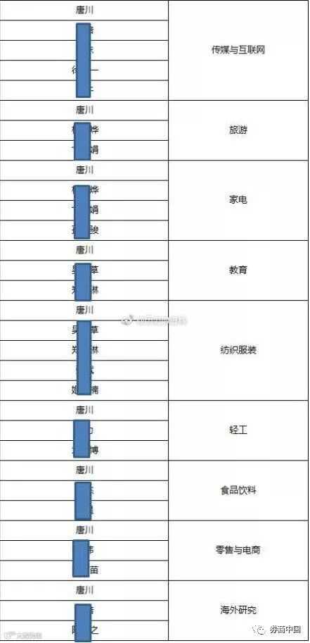 不过,网上还传出一张“派点表”,研究总监唐川的名字在9个行业组中占据第一位,包括传媒与互联网、旅游、家电、教育、纺织服装、轻工、食品饮料、零售与电商、海外研究这9个行业。