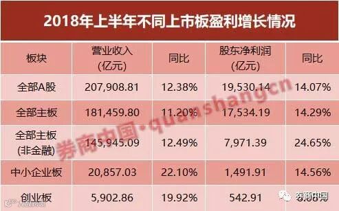 中小板盈利增速也较快,上半年营收增长22.1%,股东净利润增长14.56%。