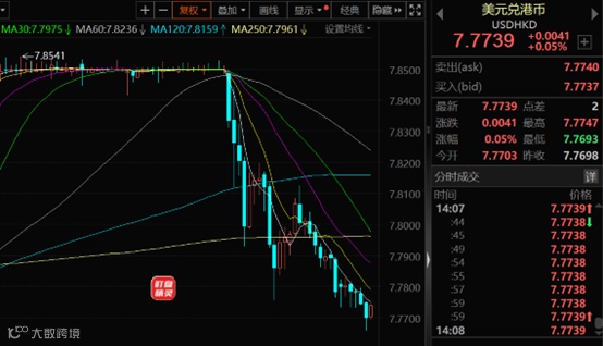 与此同时,数据显示,过去30天港元兑美元升值约1%,如此大的幅度在2003年以来仅出现过一次。