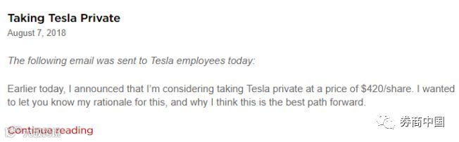 “我考虑以420美元的价格将特斯拉私有化。资金已经到位。” 特斯拉CEO埃隆·马斯克(Elon Musk)8月7日在推特声称将以每股420美元的价格私有化特斯拉,随后官方确认了这一消息。但还需要股东投票决定最终结果。