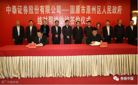 ▲2016年12月8日,中泰证券与宁夏固原市原州区政府签订结对帮扶协议。