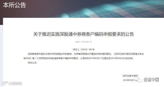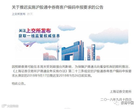 然而,原本定于9月17日正式实施的沪深港通北向看穿机制,不得不因为台风的原因改期了。