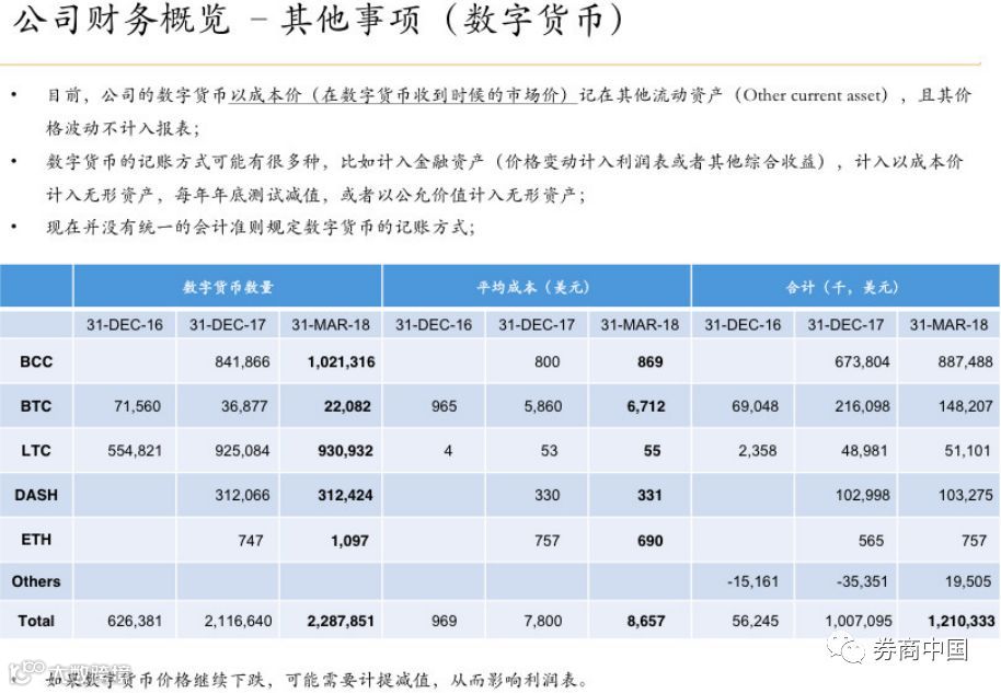 比特大陆持有的 BTC 在逐年减少,持有的 BCH( 即图中的 BCC ) 在逐年增加。从 2016 年 12 月末到 2018 年 3 月末,比特大陆持有的 BTC 从 71560 枚减少到 22082 枚,从 2017 年的 12月 末到 2018 年 3 月末,持有的 BCH 从841866 枚增加到 1021316 枚。如果这张图属实,那么,比特大陆在今年 3 月份末时,其持有的 BCH 占 BCH 总数量(1730 万枚)的 5% 以上。