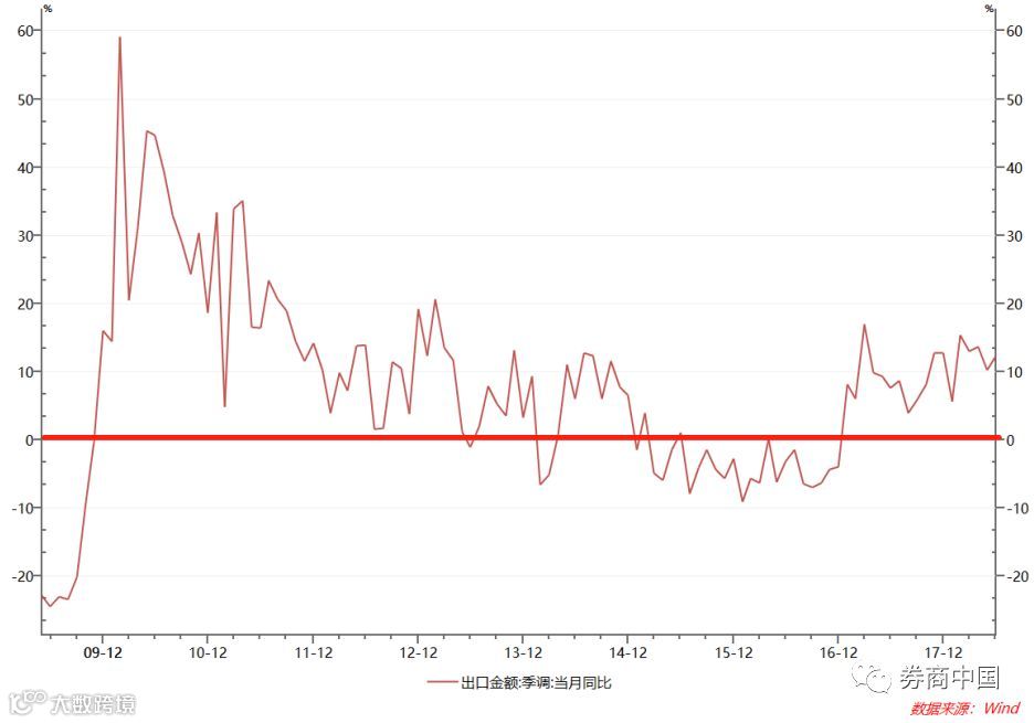2、出口负增长时间越长,积极财政政策加码力度越大,政策调整的力度和负增长持续时间有重大关系。