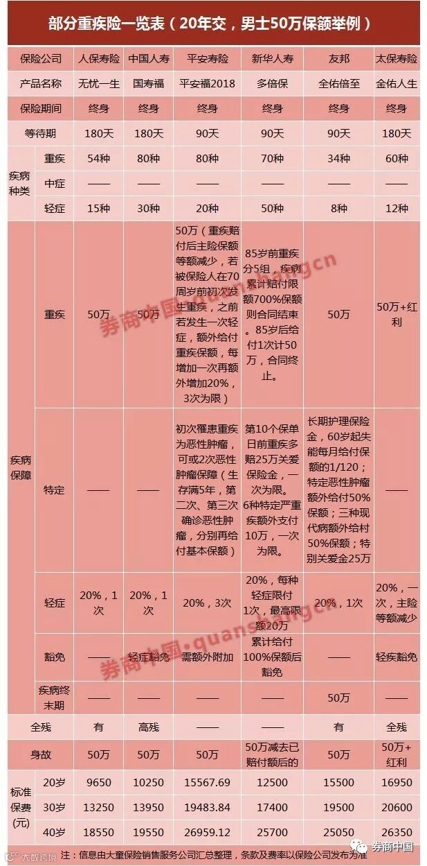 调查显示,目前市场上的重疾产品,其重疾保障范围大约在6种到120种之间,平均水平为60种。重疾险是不是保障疾病数量越多越好?答案是不一定。