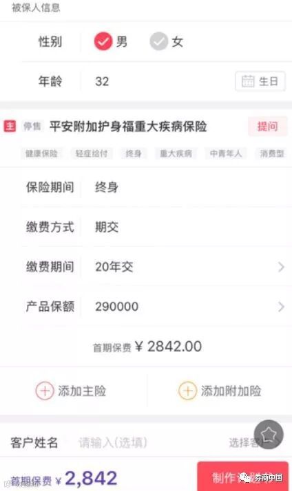 大量的重疾保险被打包,然后通过各个销售渠道销售了出去。“组合计划”几乎是市面上主流的保险产品通行的做法。比如平安人寿的平安福、中国人寿的国寿福,太平洋“金佑人生”,均是采用终身寿险+重疾的模式。