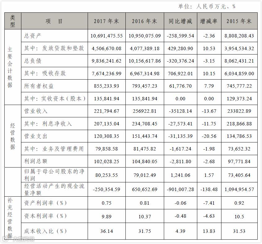 2017年,该行净利润8.025亿元,比上年的7.9亿略有上升。虽然资产和负债规模同比负增长,但2017年该行的成本收入比为36.14%,同比增13.83%。