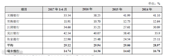 截至2017年末,该行的单一最大客户贷款比例为2.66%,最大十家客户贷款比例为16.16%,这一比率远低于同业。下图可以看出,截至2017年上半年,目前已上市的5家农商行,最大十家客户贷款比例平均达到29.12%,而瑞丰银行却仅14.74%;仅高于同样以零售业务见长的常熟银行。