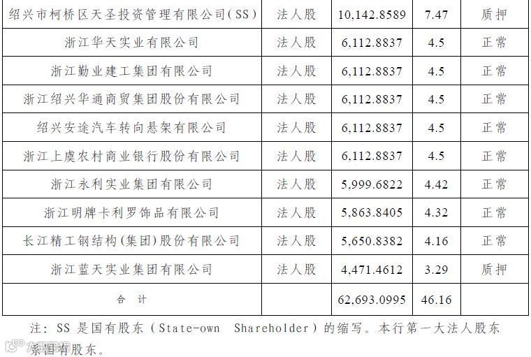 十大持股以本地国有和民营资本为主,该行两大国有股东合计持股9%(绍兴柯桥天圣投资持股7.47%、绍兴柯桥交通投资建设集团持股1.53%),背后实控人均为当地国有资产投资经营有限公司。此外,该行无其他持有本公司股份5%以上股东。