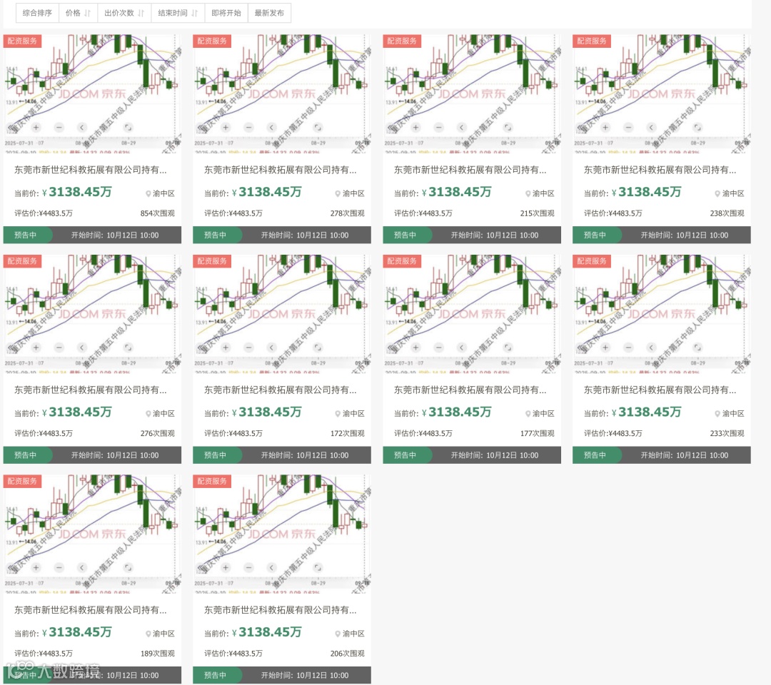 近日,锦龙股份公告称,东莞市新世纪科教拓展有限公司(以下简称“新世纪公司”)持有公司的3000万股将在10月12日进行司法拍卖,起拍价合计3.14亿元,这是锦龙股份股权年内第三次被司法拍卖。前两次分别涉及6230万股、3500万股,且均因一拍不顺进入二拍。