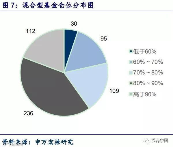 申万宏源统计数据显示,从基金仓位分布情况来看,普通股票型基金中有178只基金仓位超过85%,占比67.17%;混合型基金中仓位超过80%的基金有348只,占比达到59.79%。
