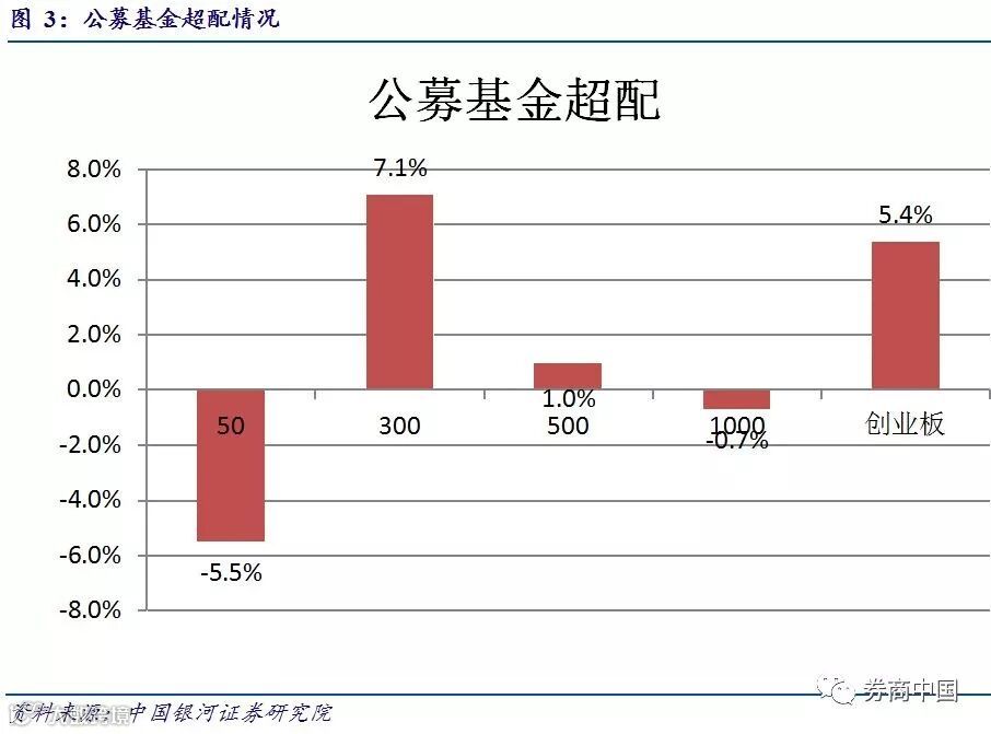 变化六:机构资金的选股风格已与去年不同,创业板获得公募基金超配,而去年表现抢眼的上证50却遭到基金减配;