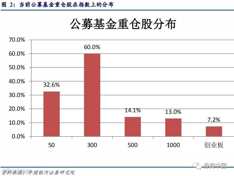 银河证券统计数据显示,公募基金重仓股在中证800+中证1000上的配置比例达到87.1%。其中在上证50、沪深300、中证500、中证1000、创业板综四个指数上的配置比率分别是32.6%、60.0%、14.1%、13.0%、7.2%。