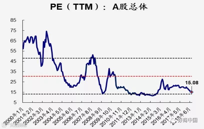 从A股历史估值来看,A股总体市盈率(TTM)已经趋于历史低位。