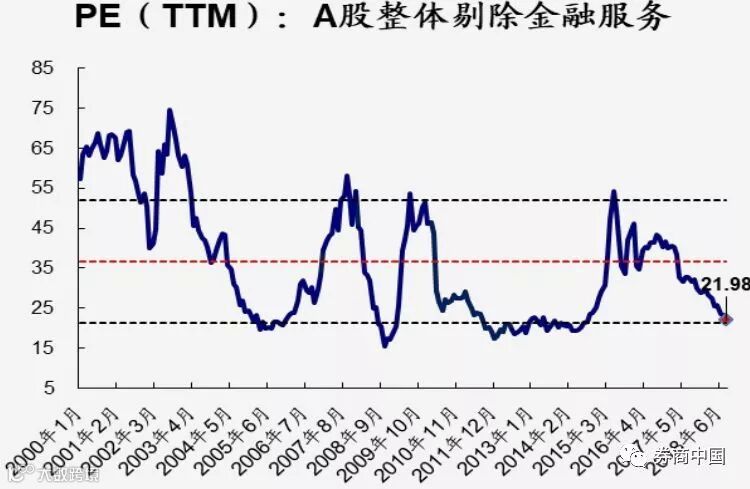 在剔除金融服务行业之后,A股整体市盈率仍位居历史低位。