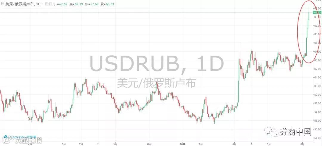 俄罗斯方面,自上周美国宣布增加对俄罗斯的制裁后,卢布一周跌近7%,创两年低点,俄央行宣布将限制外汇购买。