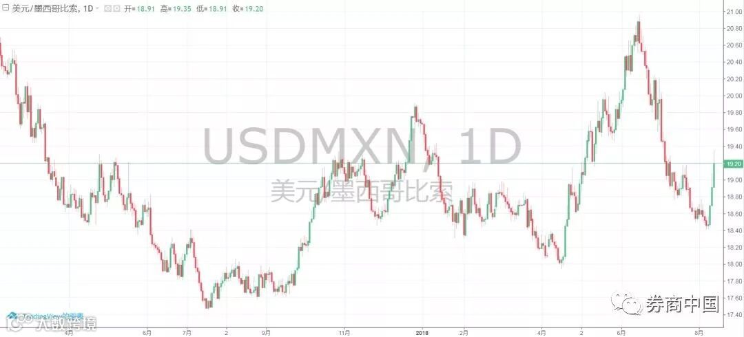 2、美元兑墨西哥比索连跌三日,累计跌幅5%;