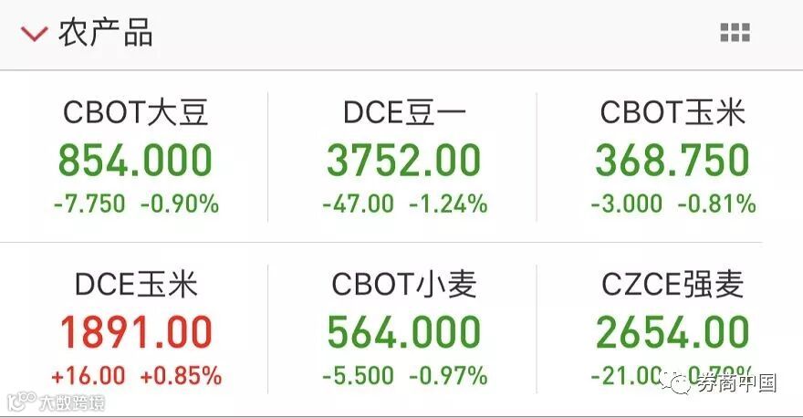 除股市外,商品市场也呈现普跌。国际金价及白银价出现小幅下跌;油价也未能逃脱下跌命运;农产品方面,CBOT大豆、CBOT玉米、CBOT小麦等多个品种出现下跌,跌幅约1%。