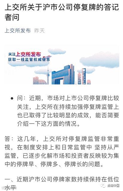 8月9日晚间,上交所对近期上市公司的停牌情形进行了梳理。昨日晚间,上交所进一步跟进,发布关于沪市公司停复牌答记者问。