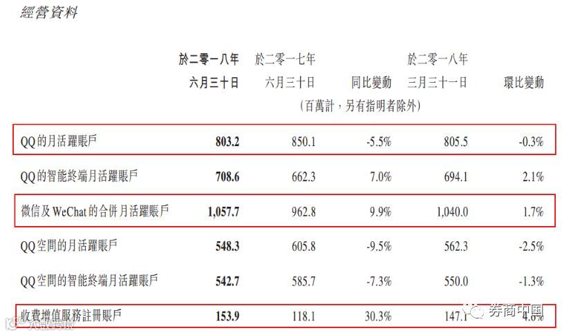 券商中国记者注意到,腾讯微信月活账户在突破10亿之后依旧保持增长。