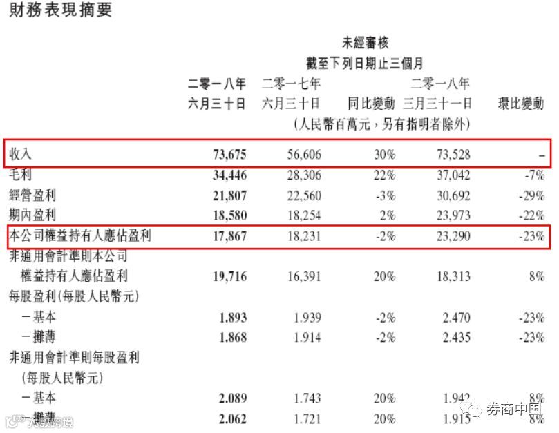 腾讯表示,收入同比增长30%,主要受支付相关服务、数字内容订购与销售、社交及其他广告以及智能手机游戏所推动。净利同比略微下降2%,主要是由于投资相关项目产生的其他收益净额较去年同期有所减少。