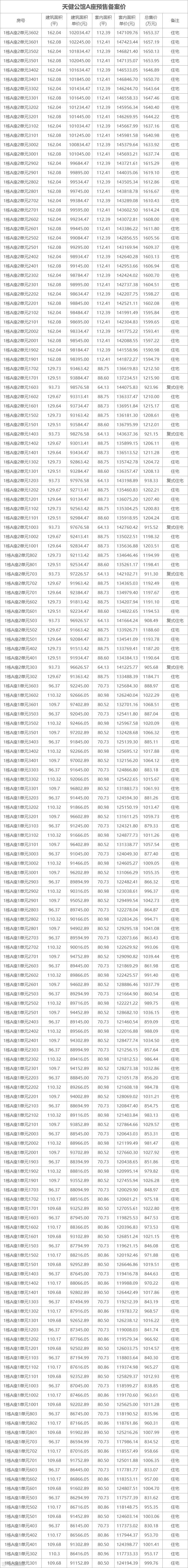 本次销售的A座共165套新房,建筑面积分别为90平、110平、130平、160平等六种户型,均价9.4万元/平,单价最低的是4楼建面96平,单价86145元/平;单价最贵的是36楼、35楼建面162平户型,单价102245元/平;总价区间在830~1658万不等。