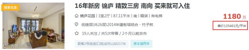 香蜜湖片区属于深圳传统“富人区”之一,房价一直领跑深圳。链家网显示,紧挨着天健公馆的锦庐花园仅一套二手房在网挂牌,均价为13.55万元/平,意味着,和9.4万元/平的均价相比,一二手房价差超过4.1万元/平,赚钱效应明显,按照90平~160平不同户型粗略计算,买到手意味着有400万到700万不等的套利空间。